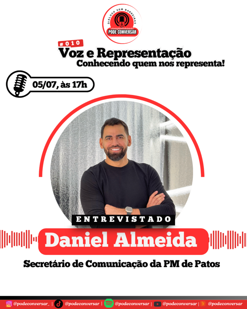 O Voz e Representação recebe Daniel José de Almeida, secretário de Comunicação da Prefeitura de Patos, neste sábado (05/07), às 17h!