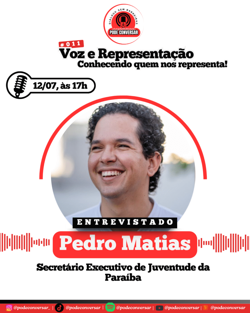 Nosso convidado é Pedro Matias, atual Secretário Executivo de Juventude da Paraíba e Coordenador da Câmara Temática de Juventude do Consórcio Nordeste.