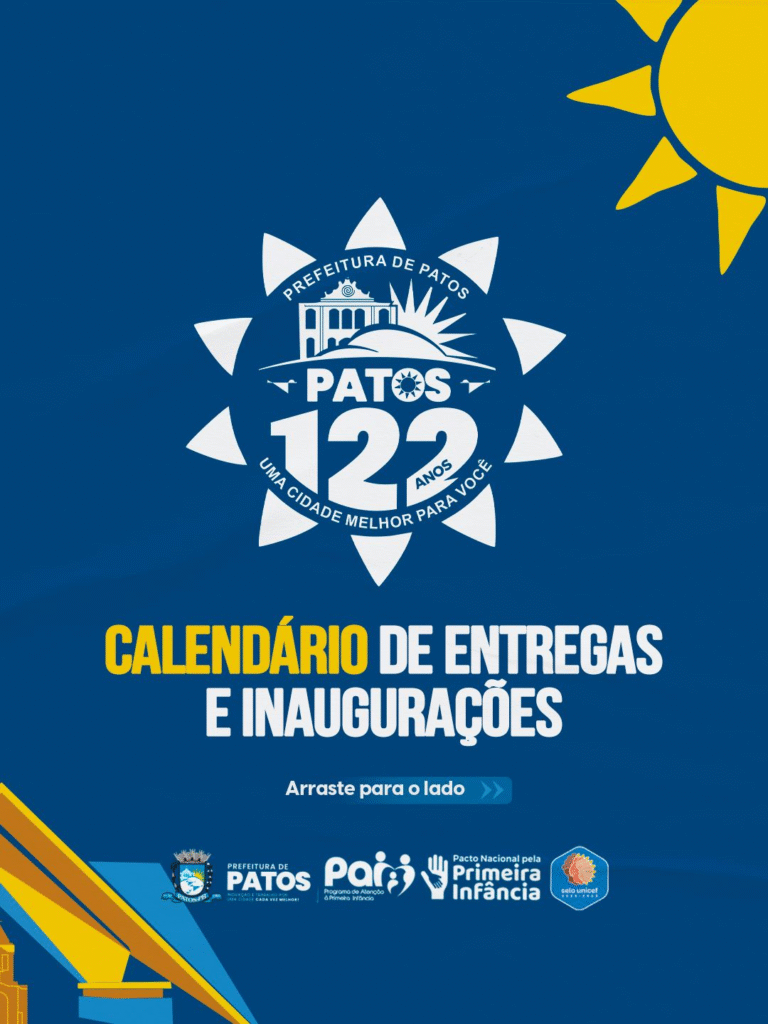 Com este calendário de inaugurações e entregas, a Prefeitura de Patos marca as comemorações pelos 122 anos da cidade com ações voltadas à saúde, educação, mobilidade, habitação e cultura. A programação se estende ao longo do mês de outubro e busca envolver toda a população patoense em momentos de conquistas e celebrações.