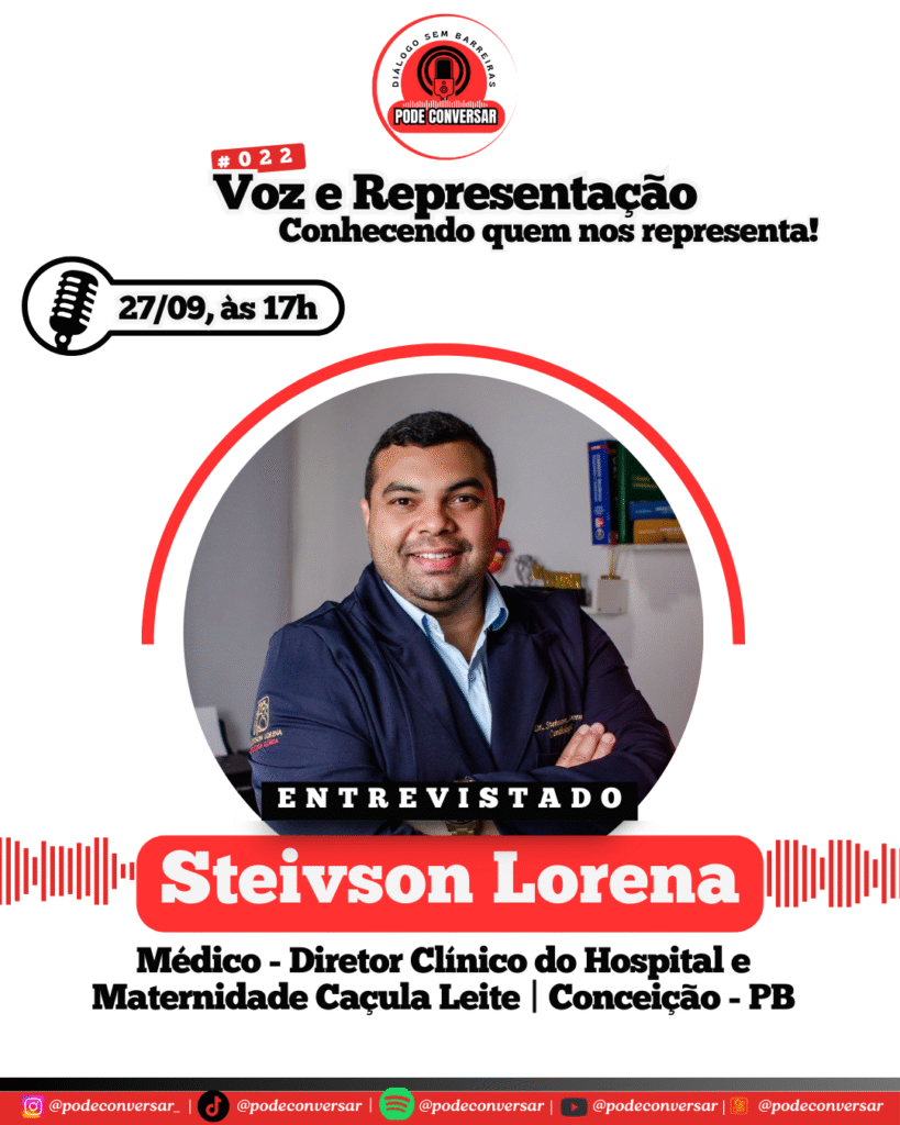 Neste sábado, 27/09, às 17h, o Pode Conversar recebeu o médico Dr. Steivson Lorena no quadro Voz e Representação. Com experiência em cardiologia, hipnose clínica e ultrassom, Dr. Steivson é Diretor Clínico do HMCL em Conceição – PB, atua no SAMU, é professor faixa preta de Jiu-Jitsu e militante político.