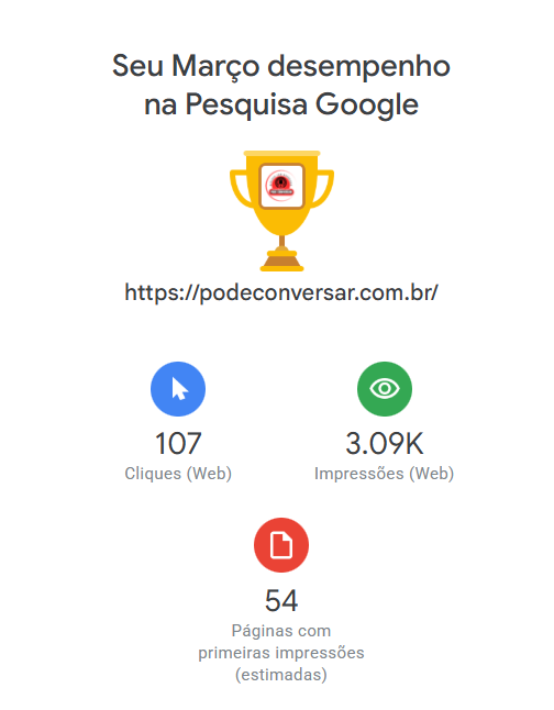 O site podeconversar.com.br registrou crescimento na sua presença digital durante o mês de março, com dados que indicam avanço na visibilidade e no acesso por meio da Pesquisa Google.